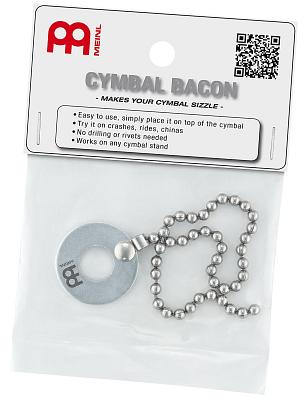 Durch Auflegen der Kette auf das Becken entsteht ein klassischer Sizzlesound, ohne dass Nieten oder Bohrungen notwendig sind. Dank einer flexiblen Montagevorrichtung kann das Cymbal Bacon problemlos an jedem Beckenständer angebracht werden.