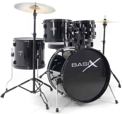 - inkl. 5-teiligem Hardware Pack bestehend aus: Snare-, Becken- und HiHat Ständer sowie Pedal und Hocker