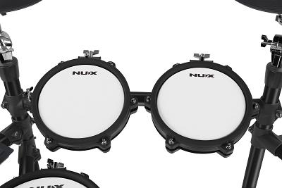 Dem Anwender-Feedback folgend hat NUX mit dem DM-310 E-Drumset eine noch attraktivere 9-teilige Konfiguration mit 10-Zoll-Snare und -Bass Tom sowie einem Set aus zwei 12-Zoll-Crash-Becken und einem 14-Zoll-Ride zusammengestellt. Diese bietet ein harmonisches Spielgefühl, das noch näher an einem akustischen Schlagzeug ist.