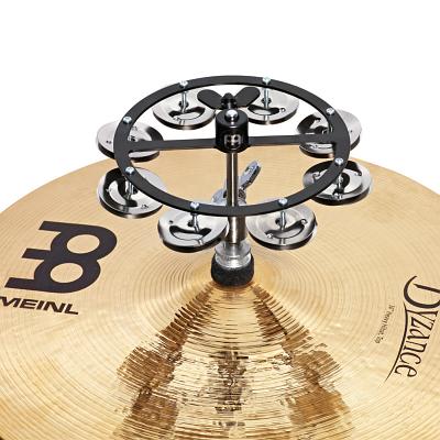 Der Headliner® Hihat Tambourine ist ein Jingle-Akzent, der auf jedem Hi-Hat-Ständer zu finden ist. Sichere Hardware sorgt für festen Halt. Eine einzelne Reihe von Steel Jingles hat laute und schneidende Geräusche. Eine leicht zugängliche Flügelmutter ermöglicht ein schnelles Einrichten, Einstellen oder Entfernen, völlig unabhängig von Ihren Becken.