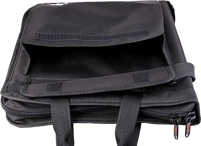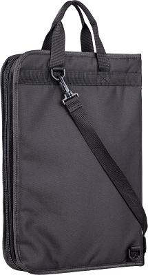 Sie ist mit elf verschieden großen Innenfächern ausgestattet und bietet so Platz für alle Arten von Sticks, Mallets oder Brushes. Das macht sie perfekt für Schlagzeuger, die auf Organisation am Set Wert legen, Marching-Drummer, die ausreichend Platz für lange, dicke Marchingsticks benötigen und auch für Percussionisten, die für ihr facettenreiches Repertoire an Mallets mehr Platz benötigen. Die extra große Außentasche ist groß genug um Bücher, Partituren, ein Practice Pad, ein Metronom und weitere, nützliche Utensilien unter zu bringen. Sie kann mittels der verstärken Griffe an der Oberseite getragen werden oder bequem mit dem verstellbaren Schultergurt um beide Hände frei zu haben. Durch die extra stabilen Haken kann sie problemlos am Standtom oder jedem anderen Percussioni