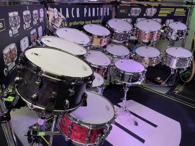 14 komplett neue Snare Modelle, mit neuen Materialien und Holzkompositionen sowie neue, teilweise aus der Black Panther Design Lab Serie adaptierte Features, wie dem Air Flow Venting und den Soniclear Snare Beds stehen zum antesten bereit.