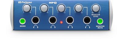 - symmetrischer Monitor-Ausgang zum Anschluss der Studio-Abhöre oder zum Durchschleifen an weitere Kopfhörerverstärker: 6,3 mm Klinke, L/R